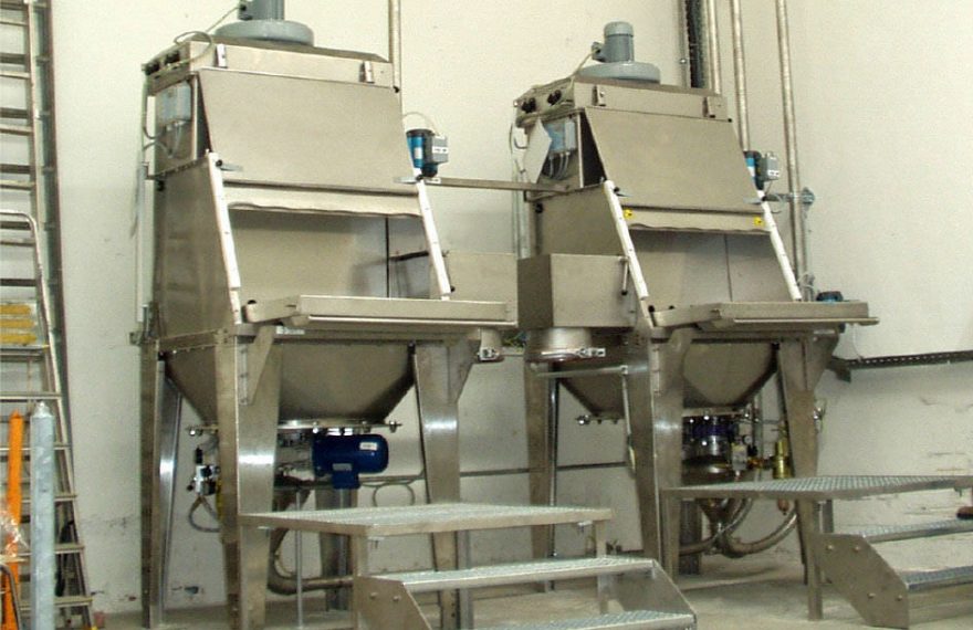Una stazione svuotasacchi permette di aprire il sacco di prodotto in comodità e sicurezza per l’operatore.